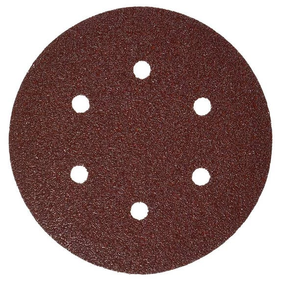 40 grit discs for fast finish or stock removal. Fits Bosch and other 6 In. random-orbit sanders with hook-and-loop mounting and 6 In., 6 hole pattern.