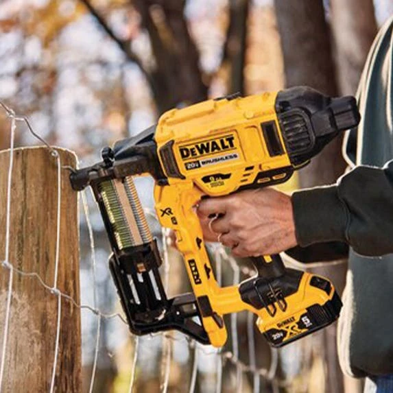 The DEWALT Cordless Fencing Stapler, designed for rural applications is 100% battery operated, eliminating the need for