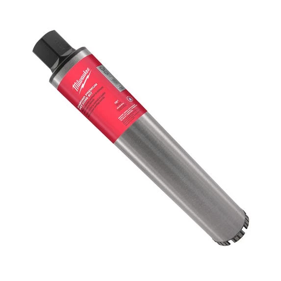 Milwaukee Diamond Premium Wet Core Bits are designed to the highest standards, only using quality diamonds. Diamond Premium Wet Core bits offer exceptional drilling life and speed in cured concrete with hard aggregate and medium steel reinforcement. Designed with threaded cap for easily extending the core bit. This bit is 15″ in length.