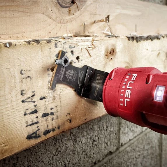 Milwaukee’s Universal Fit OPEN-LOK Titanium Enhanced Carbide Teeth Extreme Material Blades are designed for Oscillating Multi-Tools. They have a unique aggressive tooth design that offers you optimal cutting performance in wood, screws, metal pipe, nails, cement board, plaster, and more. The MILWAUKEE 1-3/8″ Titanium Enhanced Carbide Teeth Extreme Material Blade lasts up to 50X longer than standard bi-metal blades and can be used in a wide range of materials for the longest blade life. The unique, aggressive carbide tooth design offers you faster cuts and better cutting performance in wood when compared to standard carbide blades. These Milwaukee multi-tool blades are designed and made in the USA with global materials.